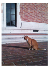 Hannah, a friendly orange tabby christened after playwright/poet Hannah More of the Bluestocking Society, is the library’s official greeter. Maybe because Hannah has recently been put on a diet and is looking for a handout? Clark reference librarian Carol Sommer jokes that Hannah’s favorite book is Bird songs = Aves ambrosiana: A Poetical Ornithology, by Miller Hageman, circa 1905. “This is a manuscript that has the musical notation of actual bird songs, and also includes poems based on the songs and, in some cases, illustrations of birds,” Sommer explains. More shy are Molly, a tortoiseshell cat named after Moll Flanders, and tabby Sophia from Tom Jones, who is mother to Belinda and Mr. B named from the novel Pamela.