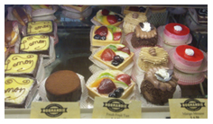 Meat lovers will struggle to choose from entrees like chicken crepes, duck confit, Steak Hache (fresh ground beef, served with fries and a salad) or the Merguez plate, (beef and lamb sausage). With a wide variety of cold and hot sandwiches you can see why trying to decide can become a nail-biting experience. Neither my friend nor I had eaten breakfast so, as we polished off the basket of “light on the inside, crunchy on the outside” bread, she ordered the French toast and I had a Normandie omelet with tasty rosemary sautéed potatoes. There was only regular coffee available but it was strong, smooth and robust.