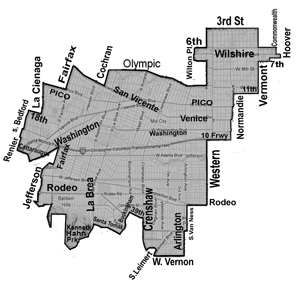 The current total number of residents in the city of Los Angeles is 3,792,621 which means each district must now contain 252,841 residents. Our Council District 10 currently falls below this number with only 240,450 residents (interestingly this is less than the 243,989 residents who lived here in 2000) so the boundaries that define our district are up for change as we shape shift to add another 12,391 residents.